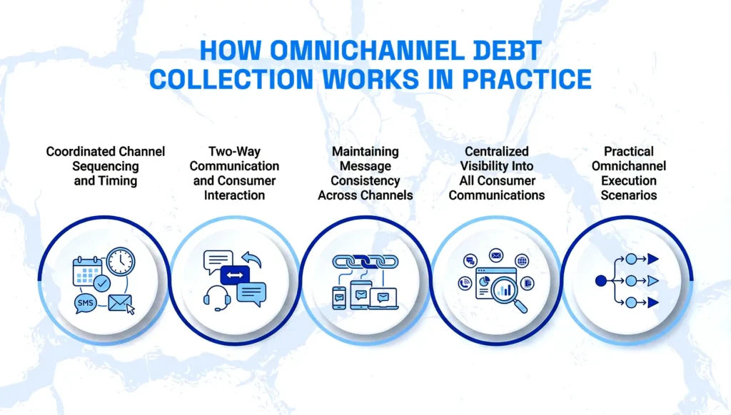 Omnichannel communication strategy addresses this gap by coordinating outreach across channels within a single, shared context. With this personalized strategy, lenders, debt buyers, and collection agencies increase contact rates, reduce friction, and improve debt collection while adhering to compliance.