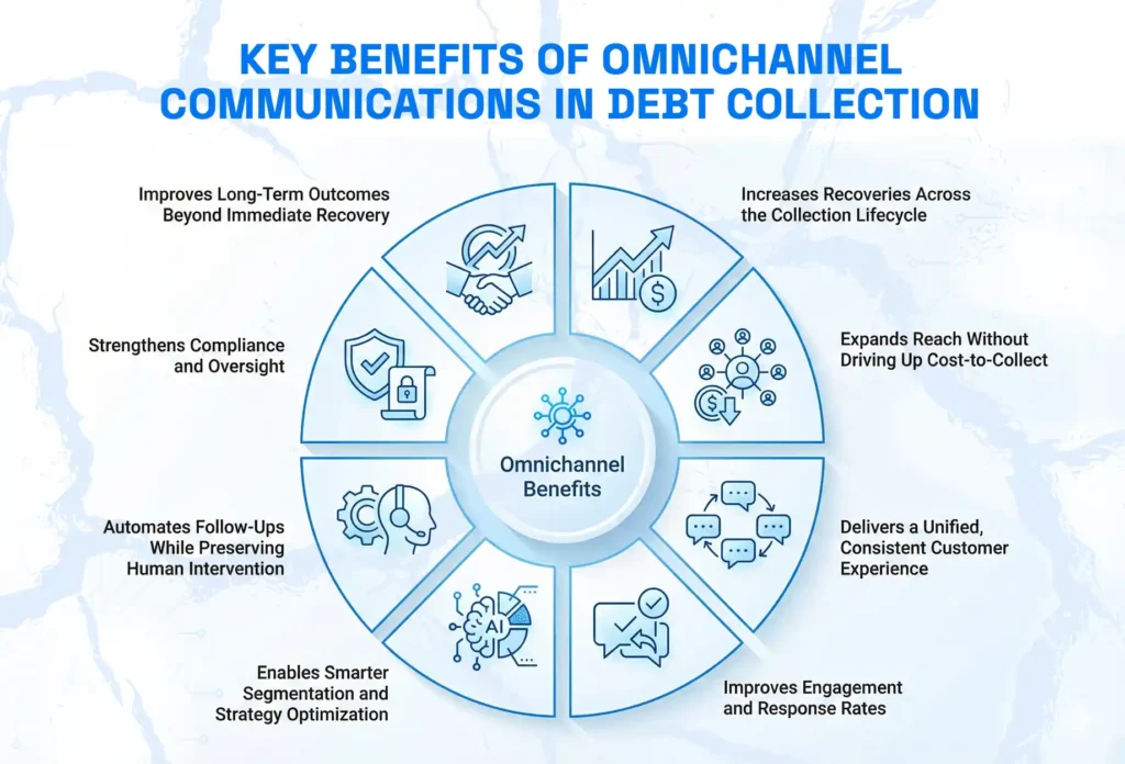 We have observed a diminishing success rate in call-and-collect operations. Traditional debt collection treats every outreach attempt as a standalone event, due to which both the collector and the consumer need to start the conversation from scratch each time. Omnichannel communications replaces this fragmented model with continuity and flexibility that improve debt collection.