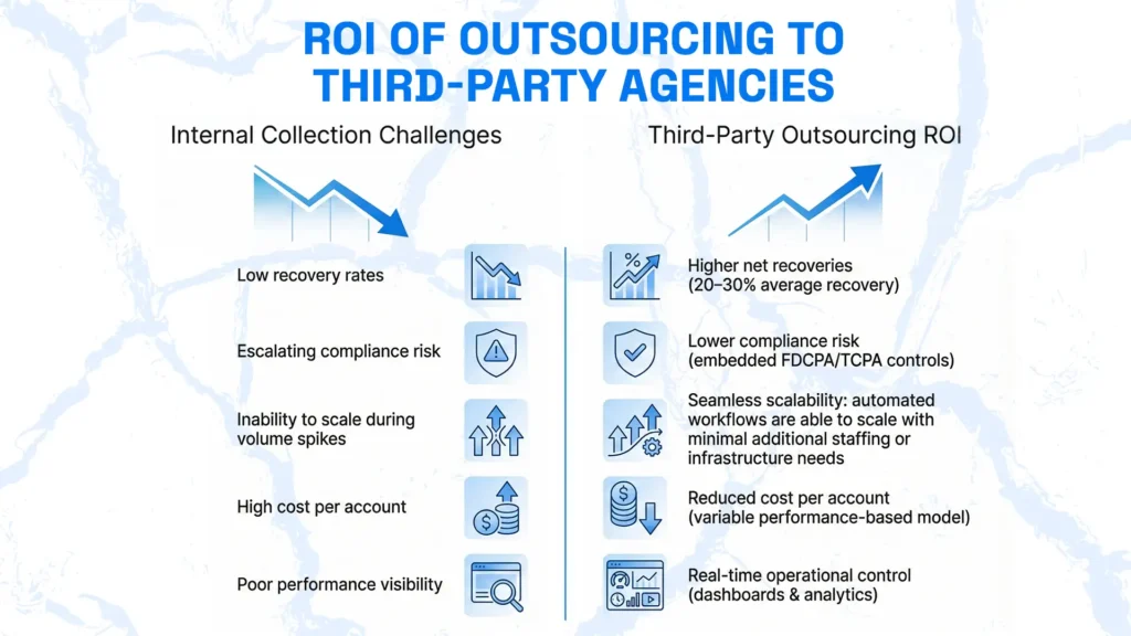 Outsourcing to third-party debt collectors isn’t just about shifting the load off internal teams; it’s more about measurable performance improvement, cost efficiency, and risk management.